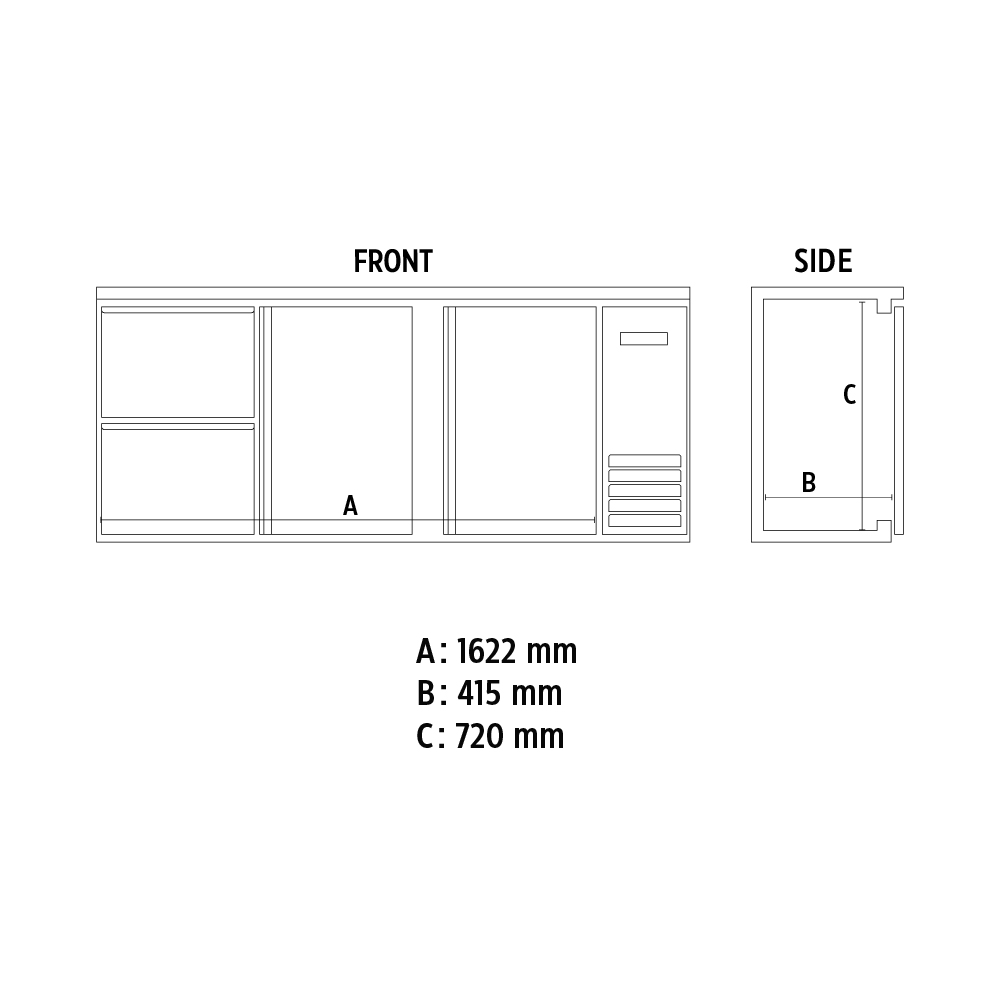 | Εσωτερικές διαστάσεις | 1622x415x720(h)mm |