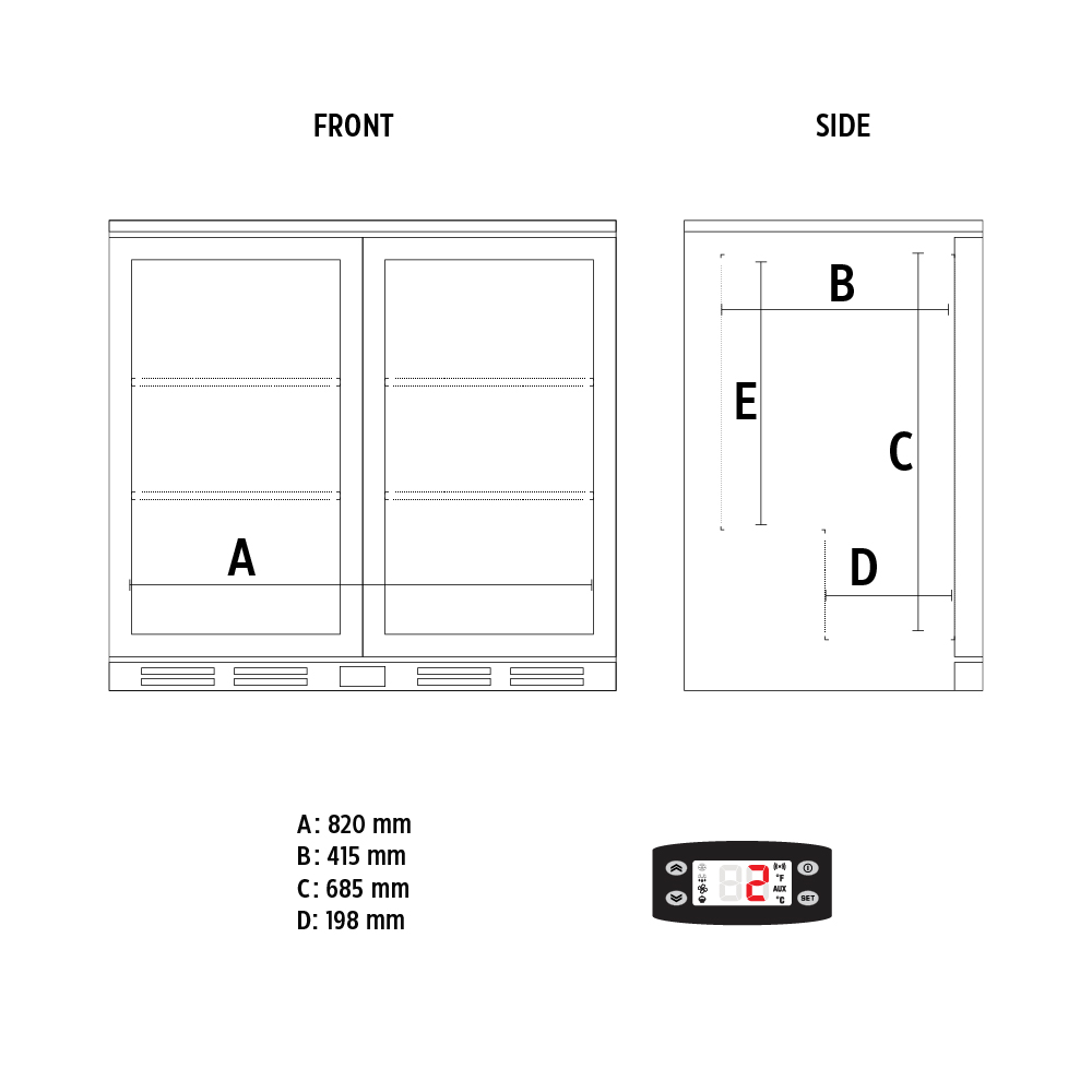 Βιτρίνα συντήρησης Back Bar διπλή με ανοιγόμενες πόρτες, συνολικής χωρητικότητας 188lt του ιταλικού εργοστασίου Klimaitalia. Διαθέτει στατική ψύξη, υποβοηθούμενη με ανεμιστήρα.