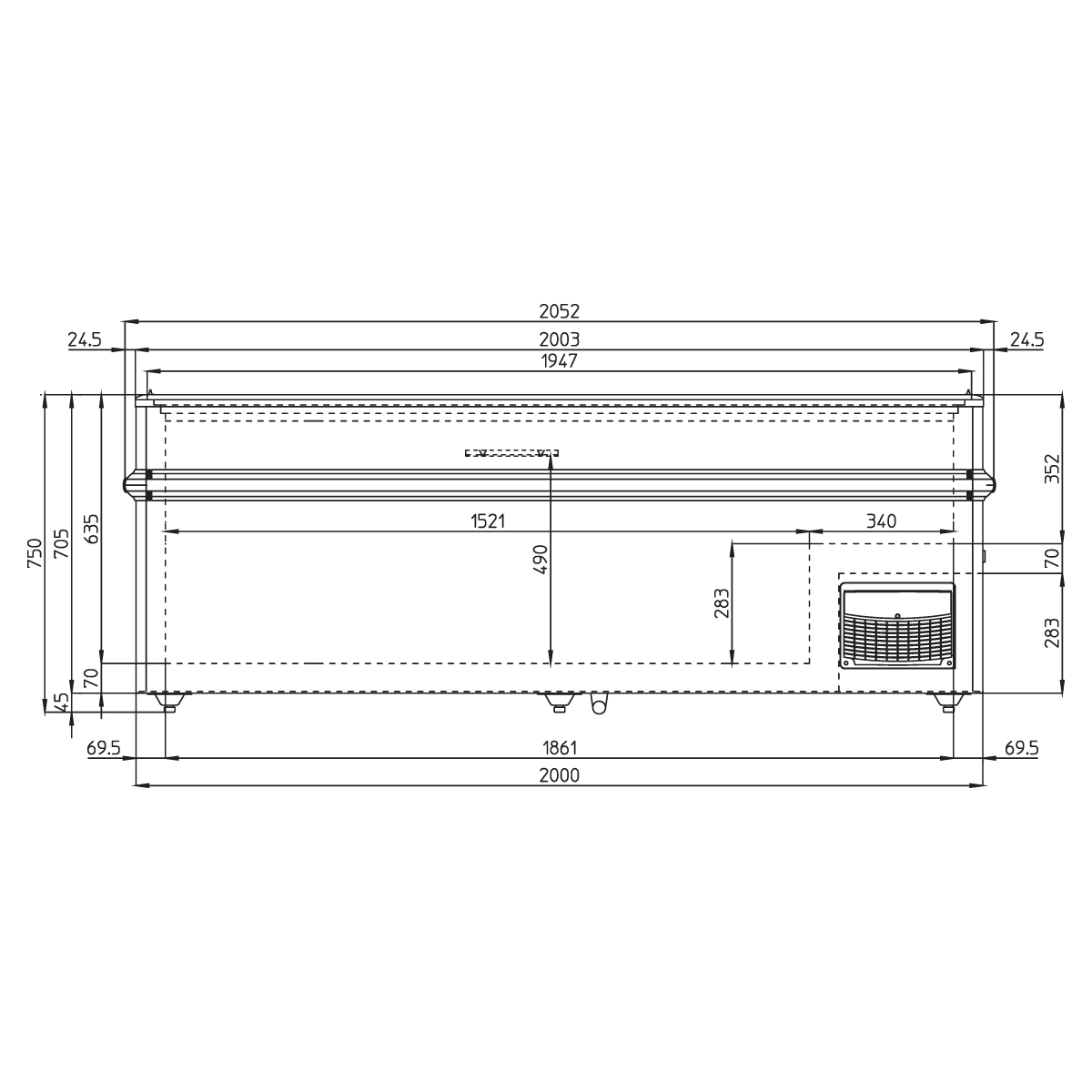 | Eξωτερικές διαστάσεις | 2052x967x750(h)mm |