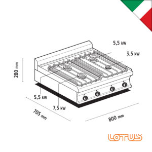 | Εστίες | 1 x (3,5Kw) & 1 x (5,5Kw) |