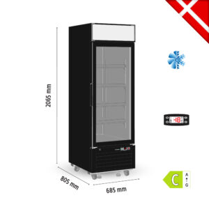 Βιτρίνα κατάψυξης με μετώπη. Διαθέτει στατική ψύξη με 6 ψυχόμενα ράφια και συνολική χωρητικότητα 300lt. Tου εργοστασίου Tefcold Δανίας.